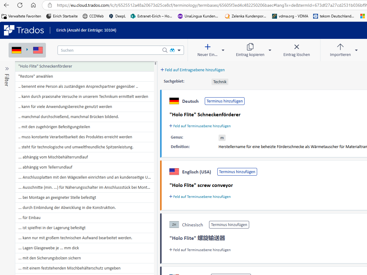 Die Eirich-Firmenterminologie (auch als Eirich-Wörterbuch bekannt) ist eine Datenbank, welche über das Intranet aufgerufen werden kann. Bisher lag die auch als „Max“ bekannte Datenbank auf einem Server in EH. Zukünftig verwenden wir dazu eine Cloud-Anwendung von RWS SDL àTrados.